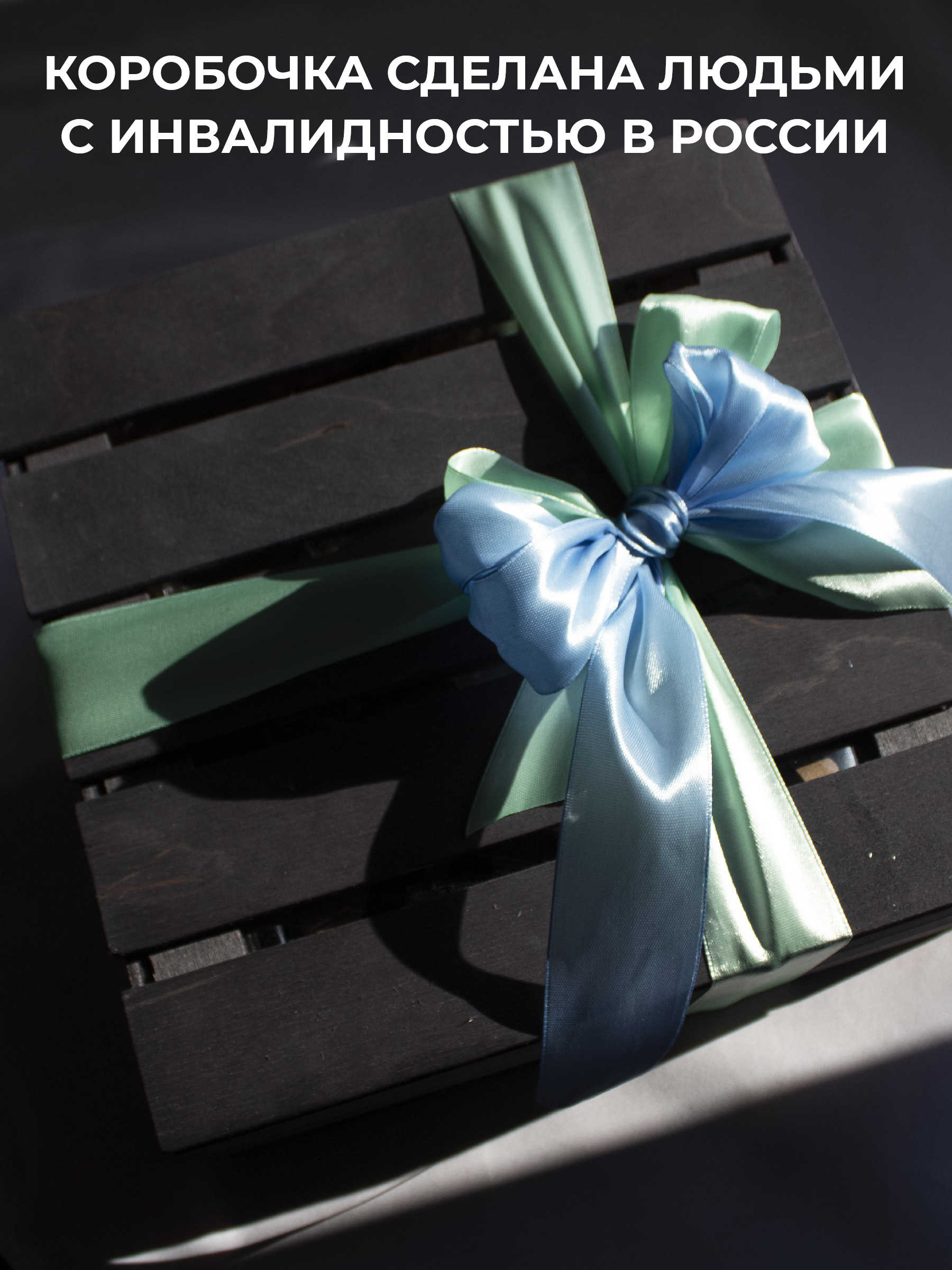 Деревянная коробка создана вручную людьми с инвалидностью в России. Сделайте уникальный подарок себе или близким, создавая при этом светлое будущее для тех, кто в этом нуждается. Этот набор – это не только наслаждение вкусом, но и возможность поддержать важное дело, помогая людям с инвалидностью и пенсионерам