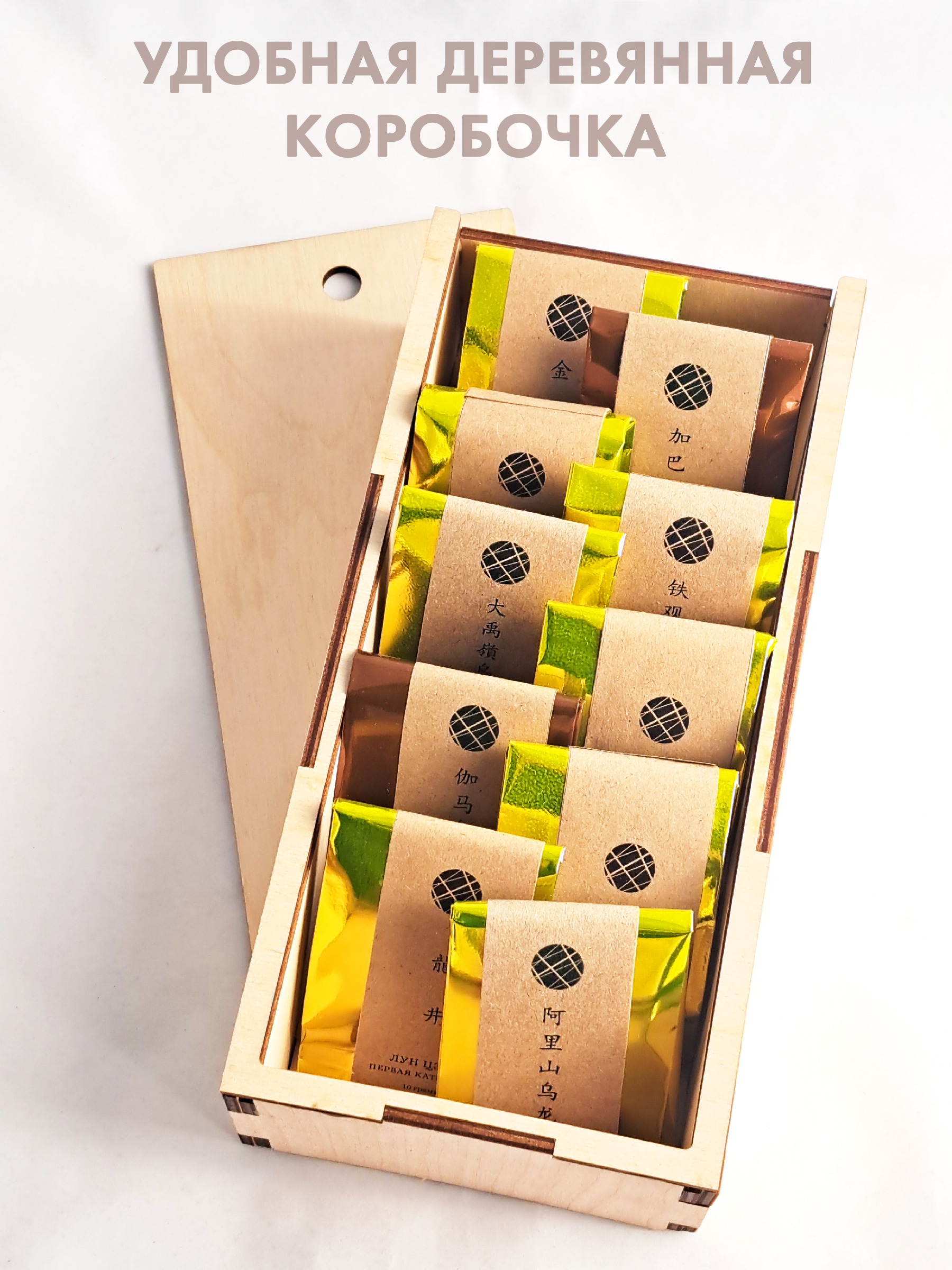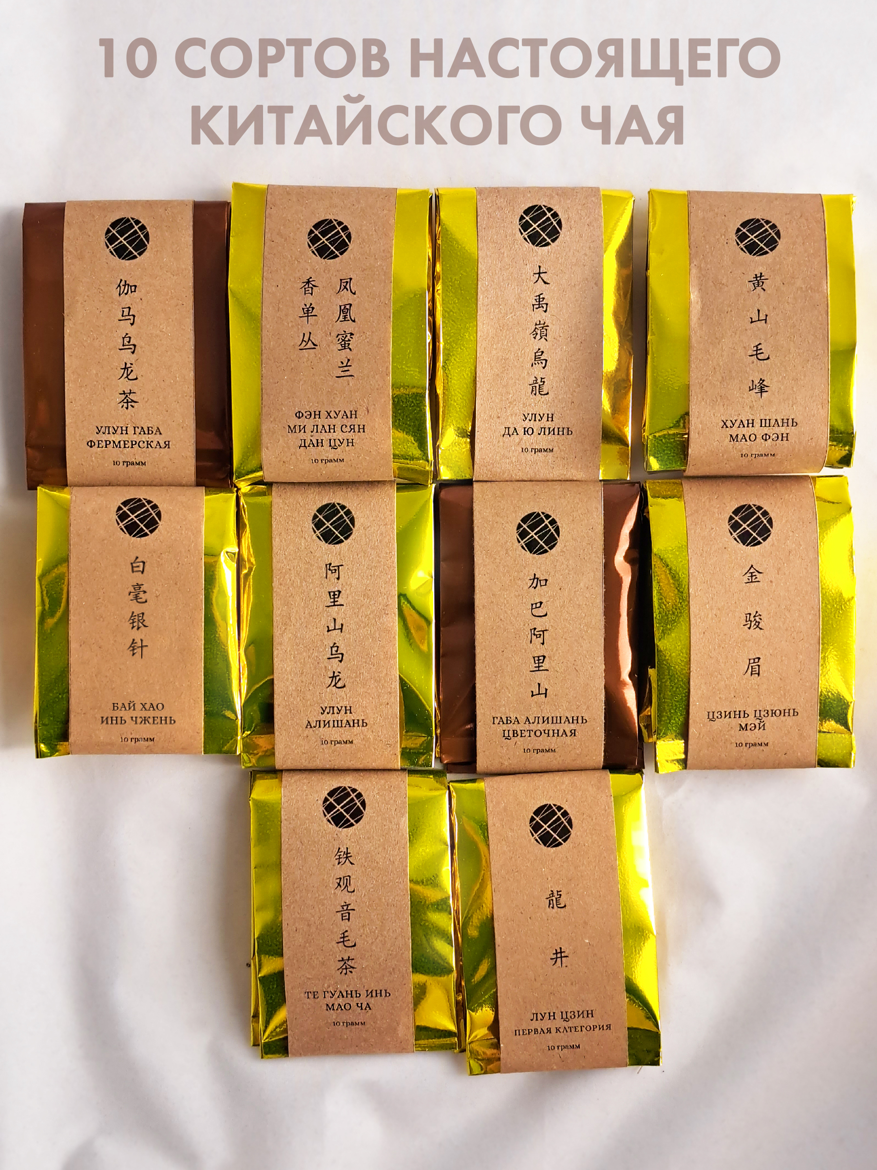 В наборе 10 сортов настоящего, качественного китайского чая. Тщательно подобранные вкусы с плантаций Китая.