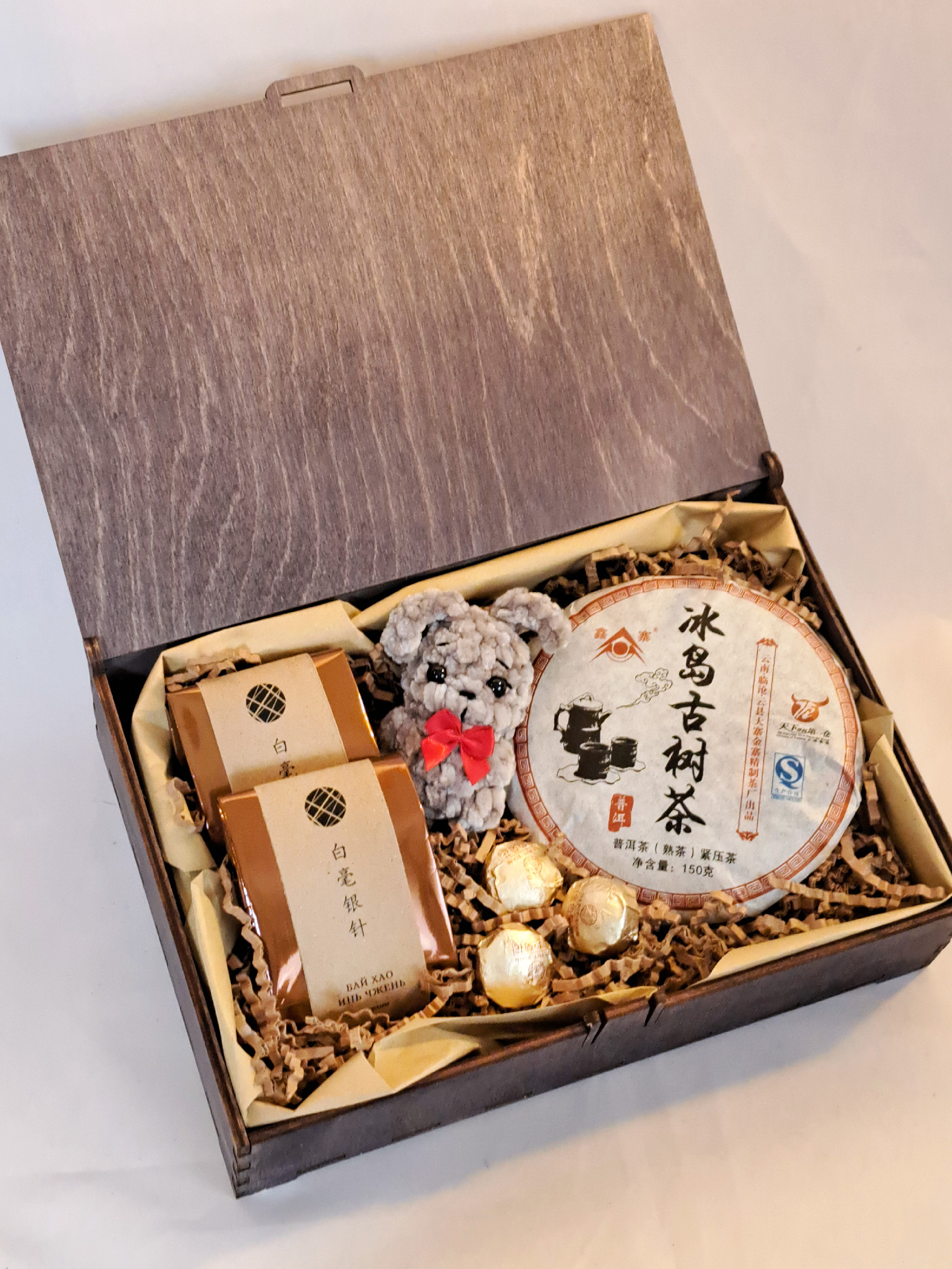 Подарочный набор чая Пуэр с игрушкой ручной работы