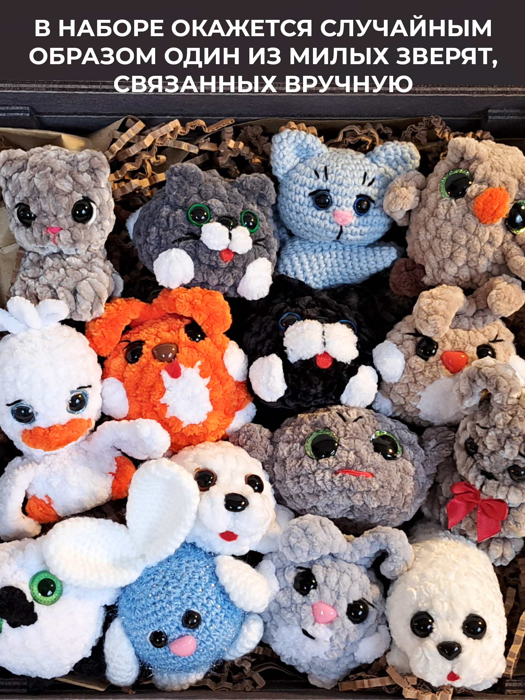Обратите внимание: в наборе вы найдете одну из вязаных игрушек-зверят, выполненных вручную пенсионеркой – каждая игрушка уникальна, и выбор происходит случайным образом из доступных моделей. Это делает ваш подарок по-настоящему неповторимым и особенным!